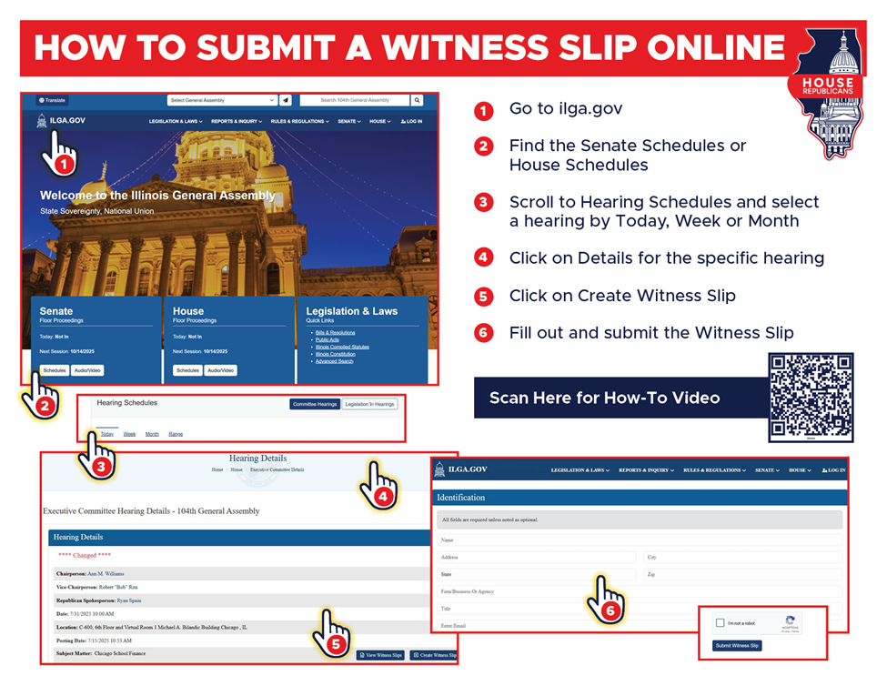 Witness slips are a vital piece of the legislative process. Before a bill is heard in committee, the chairperson will read who has submitted witness slips and whether they support or oppose the bill. This helps inform me and other legislators as to where Illinoisans and organizations stand, allowing us to make informed decisions when voting.