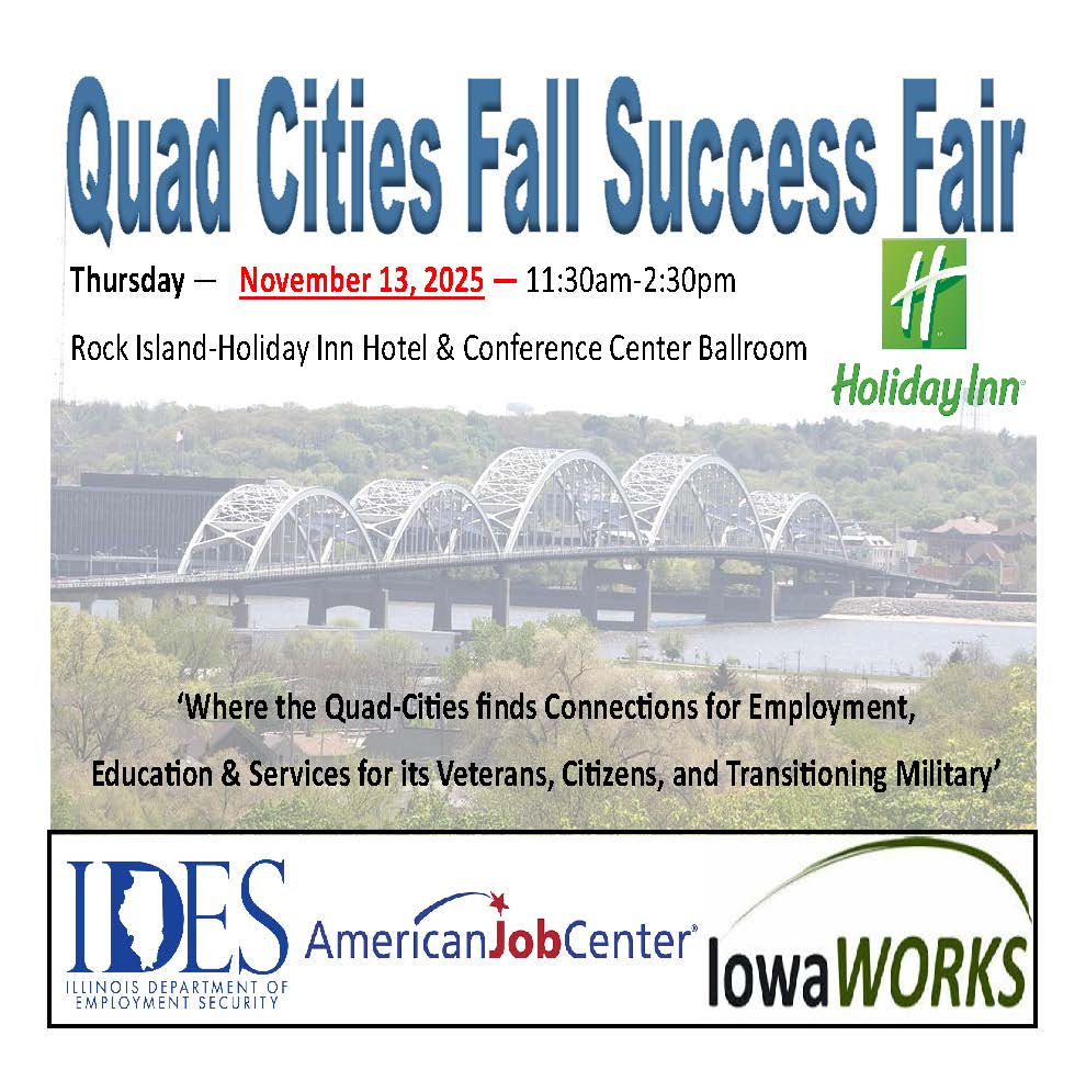 Come join us, Thursday, 13 November 2025 at 11:30AM-2:30PM at the QC Fall Success Fair. What to expect: 100+ employers and community resource organizations on-site Thousands of job openings across…
